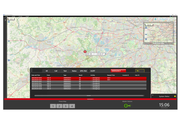 | Geo Fencing, Map display of terminal in emergency, Text messaging, Status messaging, Stun/Kill, Exporting of communications log, positional data, Display of communication logs (Call log and Message log), Indoor and Outdoor maps, Auto polling, and Voice dispatching |